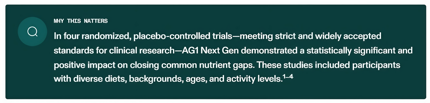 AG1 Next Gen is clinically shown to fill common nutrient gaps even in healthy eaters.¹⁻⁴
