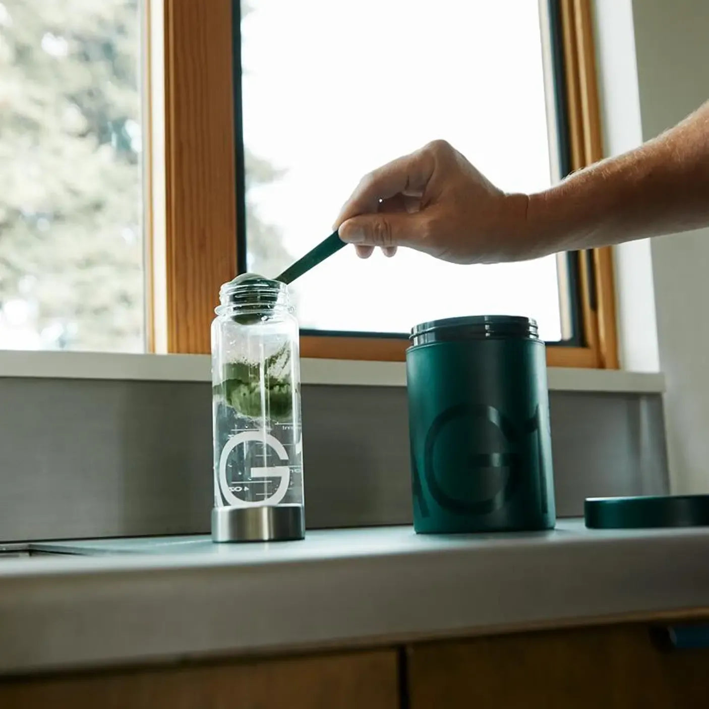 Fill your AG1 shaker bottle or a glass with 8 to 10 ounces of cold water. Then, add one level 13g scoop or one travel pack of AG1 powder. Shake or stir until fully blended.