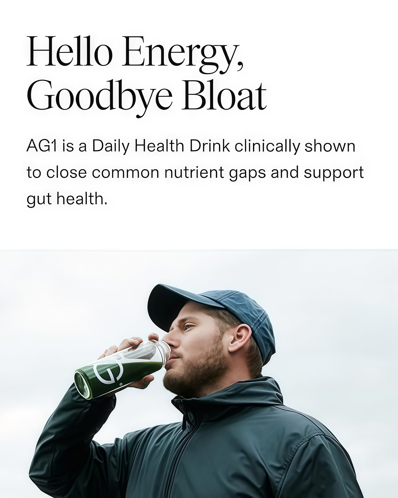 AG1 Next Gen is a Daily Health Drink clinically shown to close common nutrient gaps and support gut health (1-4), replacing your daily multivitamin, probiotics, adaptogens, and more.